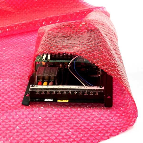 - Pink anti static bubble wrap formulation helps limit electrostatic discharge